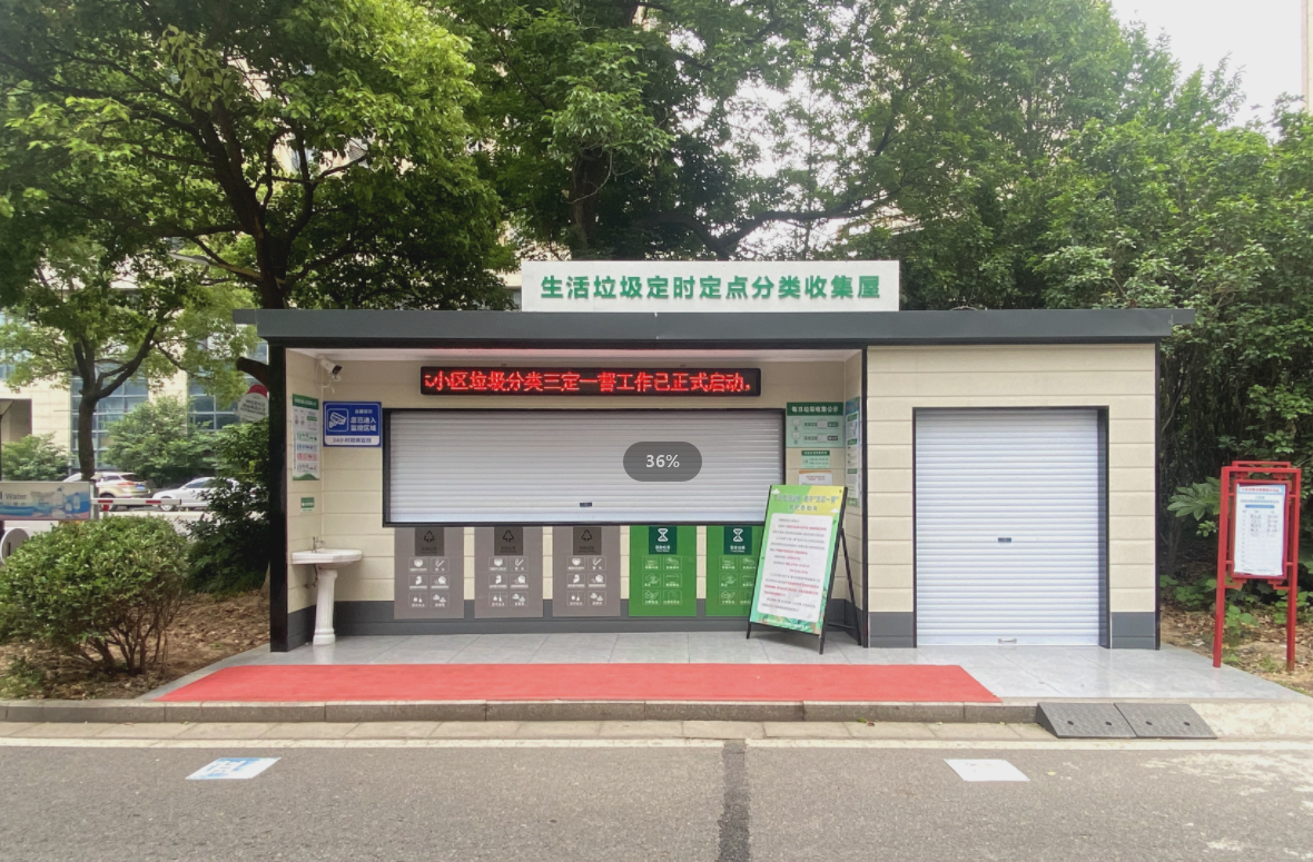 江左岸位于澄江街道黃山社區,作為部隊經濟適用房,業主多為隨軍家屬,老年人偏多,小區由兩排三幢高層組成。2023年初,該小區正式實施“四分類”定時定點投放,設置1座定時定點投放屋,投放時間為上午6:30-8:30、下午18:00-20:00,其他垃圾和廚余垃圾每日兩清運。