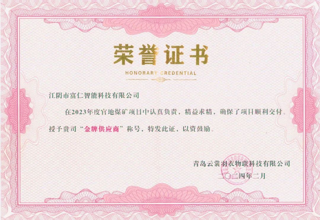 2024年春節(jié)前夕,富仁智能被青島云裳羽衣物聯(lián)科技有限公司授予“2023年度金牌供應(yīng)商”這一榮譽(yù),這是海爾衣聯(lián)網(wǎng)對供應(yīng)商伙伴的高度肯定!至此,富仁智能的農(nóng)歷癸卯年完美收官。