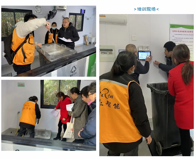 在分類屋運營前,督導員隊伍的建設尤為重要。為了讓督導員能夠快速勝任現場運營工作,專業且負責地在各小區進行垃圾分類督導,富仁智能針對首批入職的督導員進行了一系列的崗前培訓活動,包括垃圾分類知識、實操培訓、安全教育培訓、宣教話術培訓等。富仁智能通過系統規范的崗前培訓,切實提升各位督導員的工作能力,為“三定一督”垃圾分類工作的順利運營打下堅實基礎。